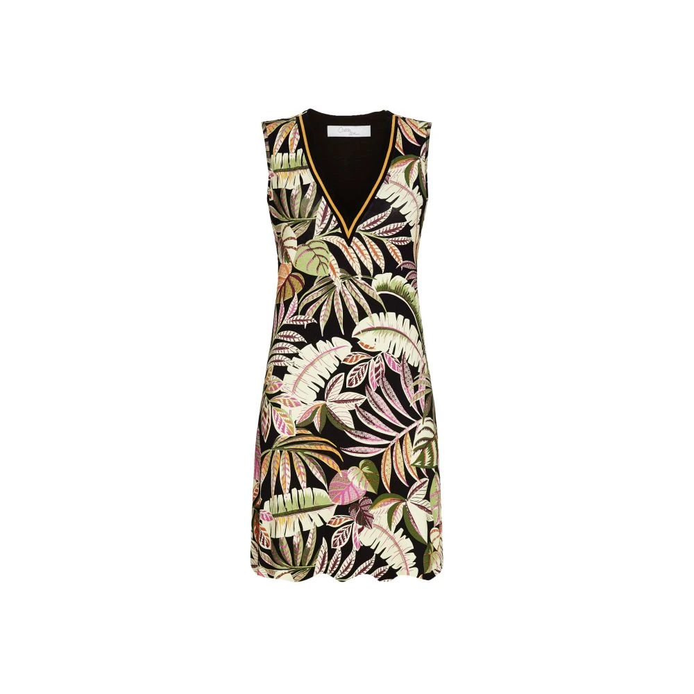 Fabriquée à partir d’un design tropical, cette robe devient rapidement un accroche-regard. Les couleurs vives prennent tout leur sens sur un fond noir. La touche sportive et élégante est soulignée par une profonde encolure en V avec des poignets en tricot. Le tissu fluide en viscose-élasthanne est agréablement doux sur votre peau et impressionne par sa brillance de couleur durable.