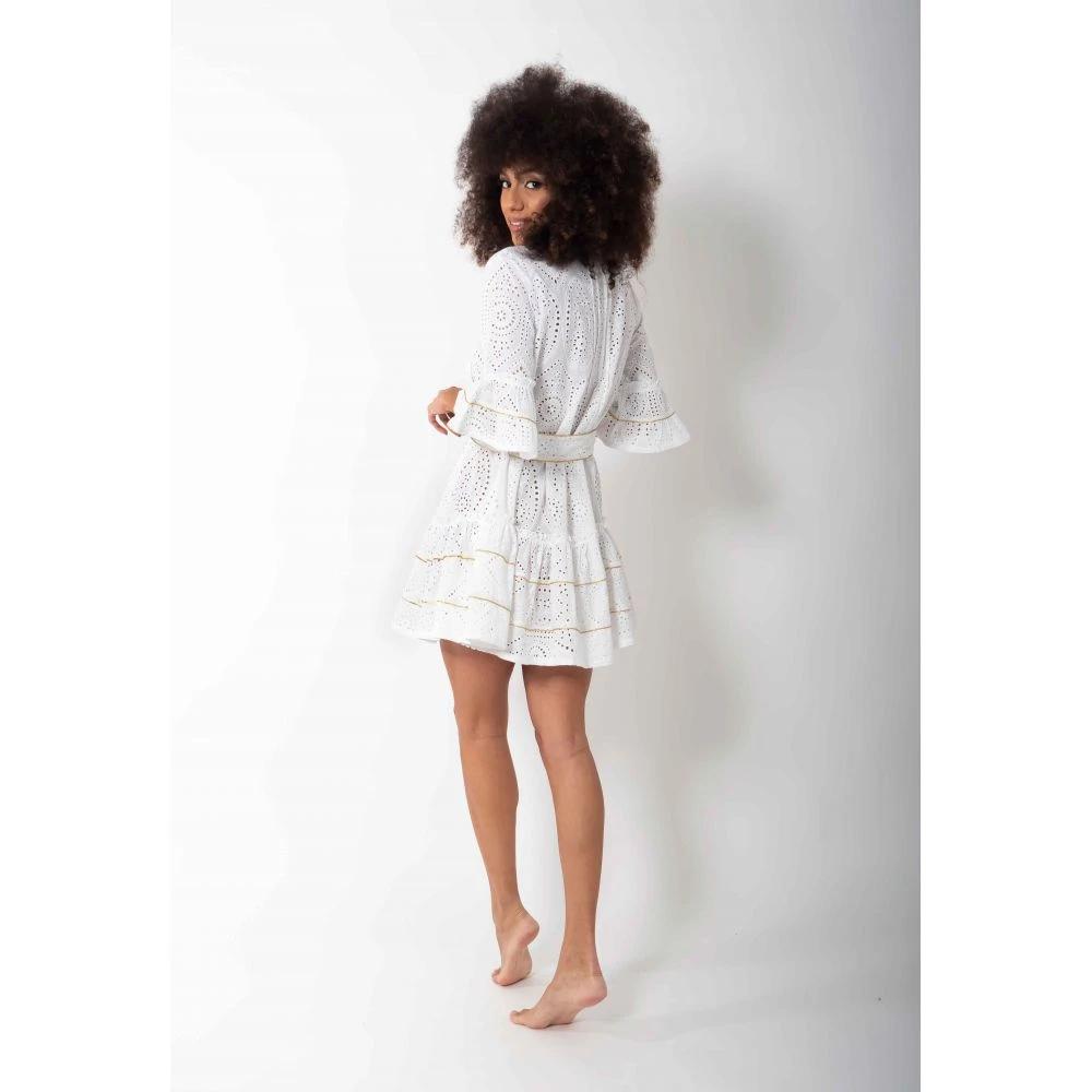 Robe Courte Boutonnée Manches 3/4, Aura, Iconique IC23-013-BLANC