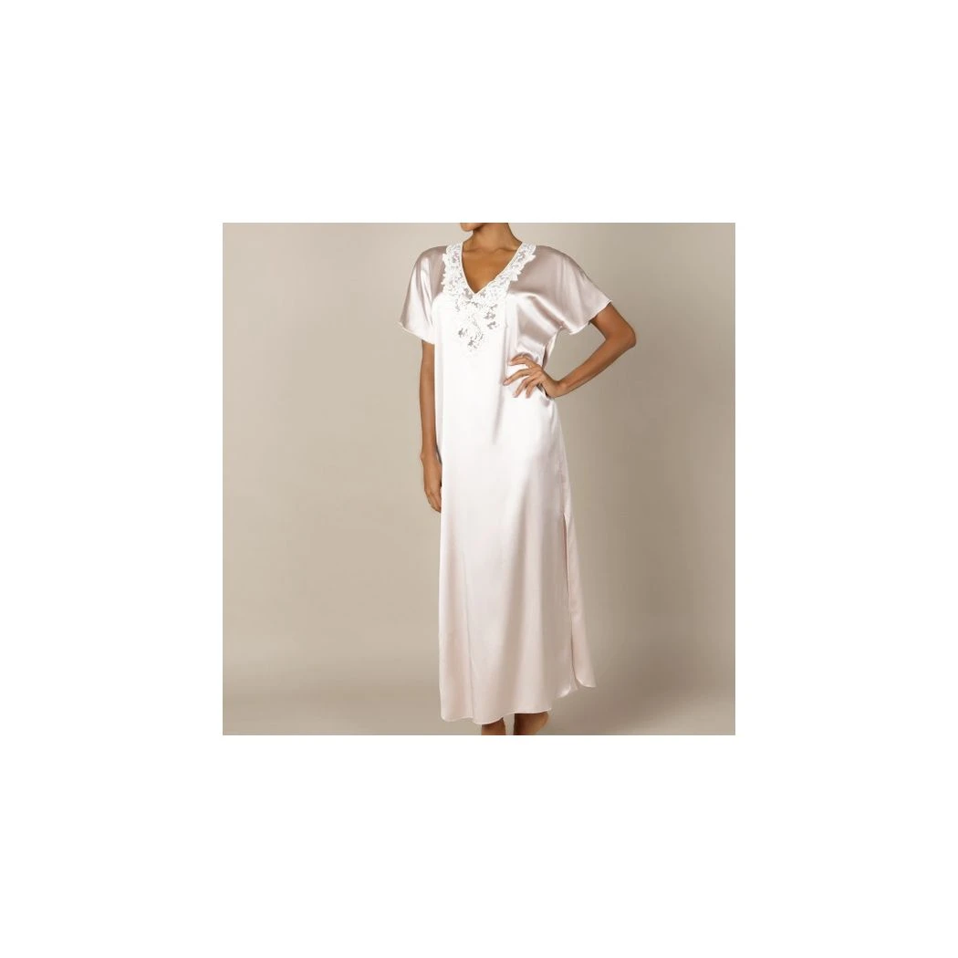 Cette longue chemise de nuit en soie satinée douce est un confort irrésistible.
