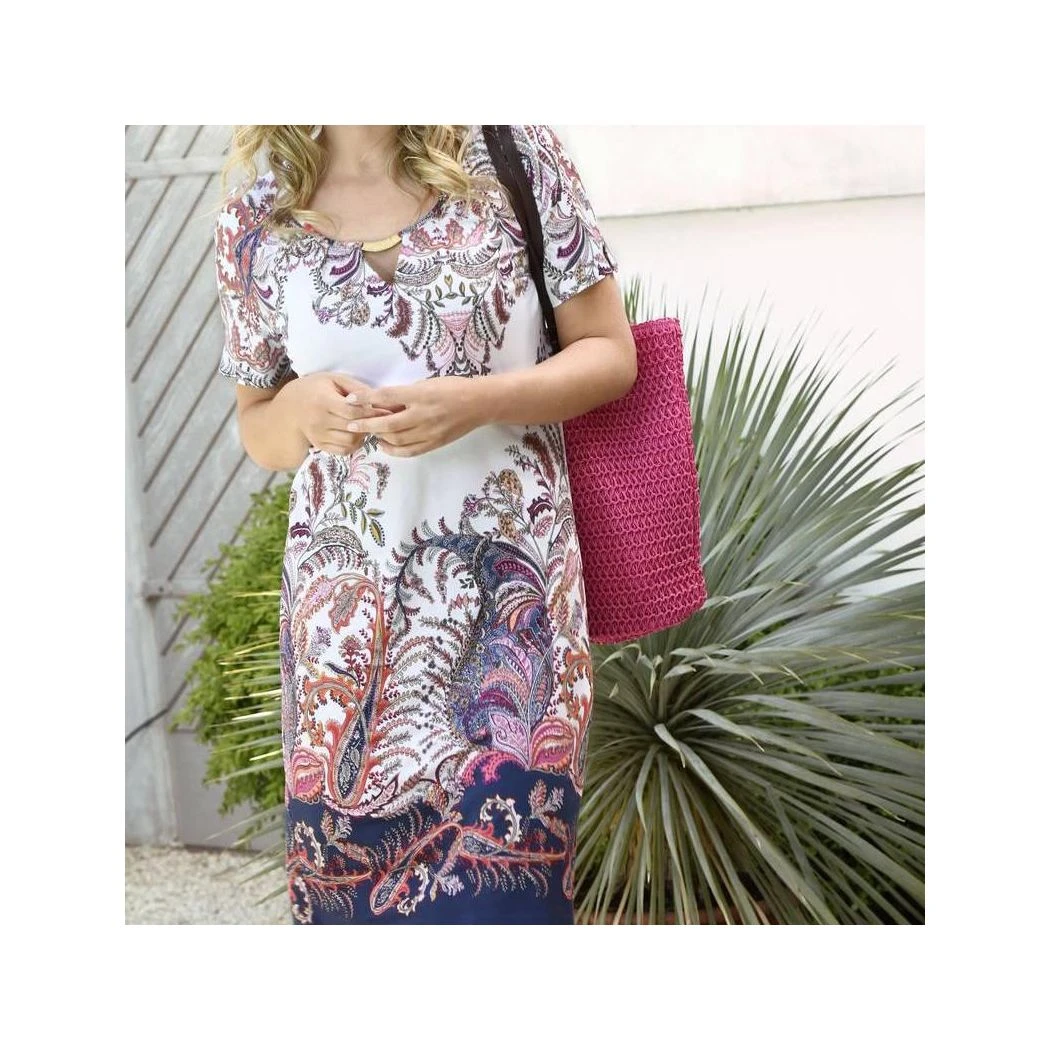 Cette robe chic est conçue dans un imprimĂ© cachemire tendance. Avec l’Ă©lĂ©ment dĂ©coratif sur le dĂ©colletĂ©, il devient rapidement un accroche-regard. Le plissĂ© astucieux sur l’encolure souligne l’ensemble. Les manches raglantes Ă la mode sont ornĂ©es d’une fente sur le haut du bras. FabriquĂ© Ă partir du meilleur mĂ©lange viscose-Ă©lasthanne, le tissu est particuliĂšrement lisse sur la peau. Le matĂ©riau impressionne par son Ă©clat de couleur permanent et sa stabilitĂ©.